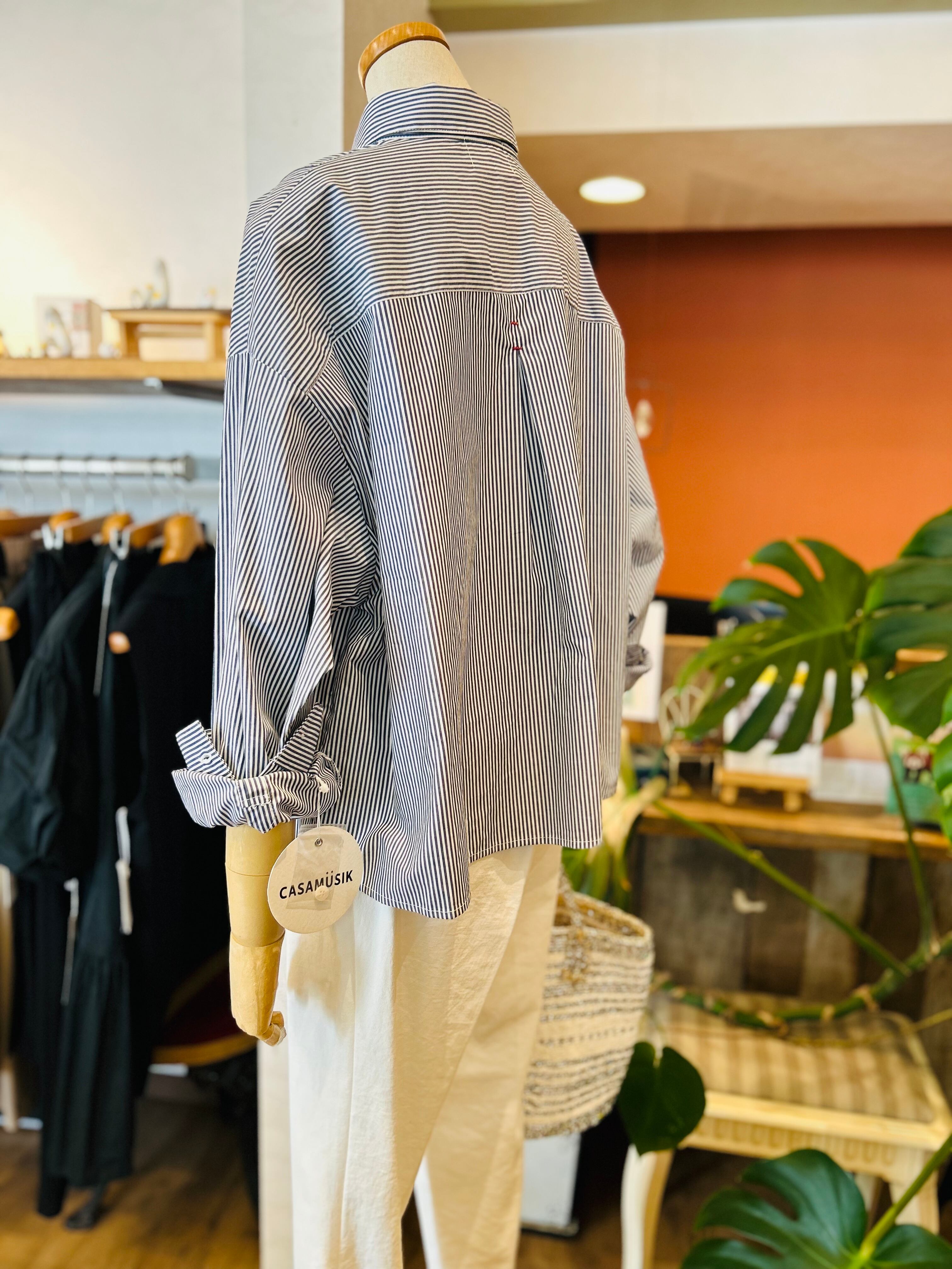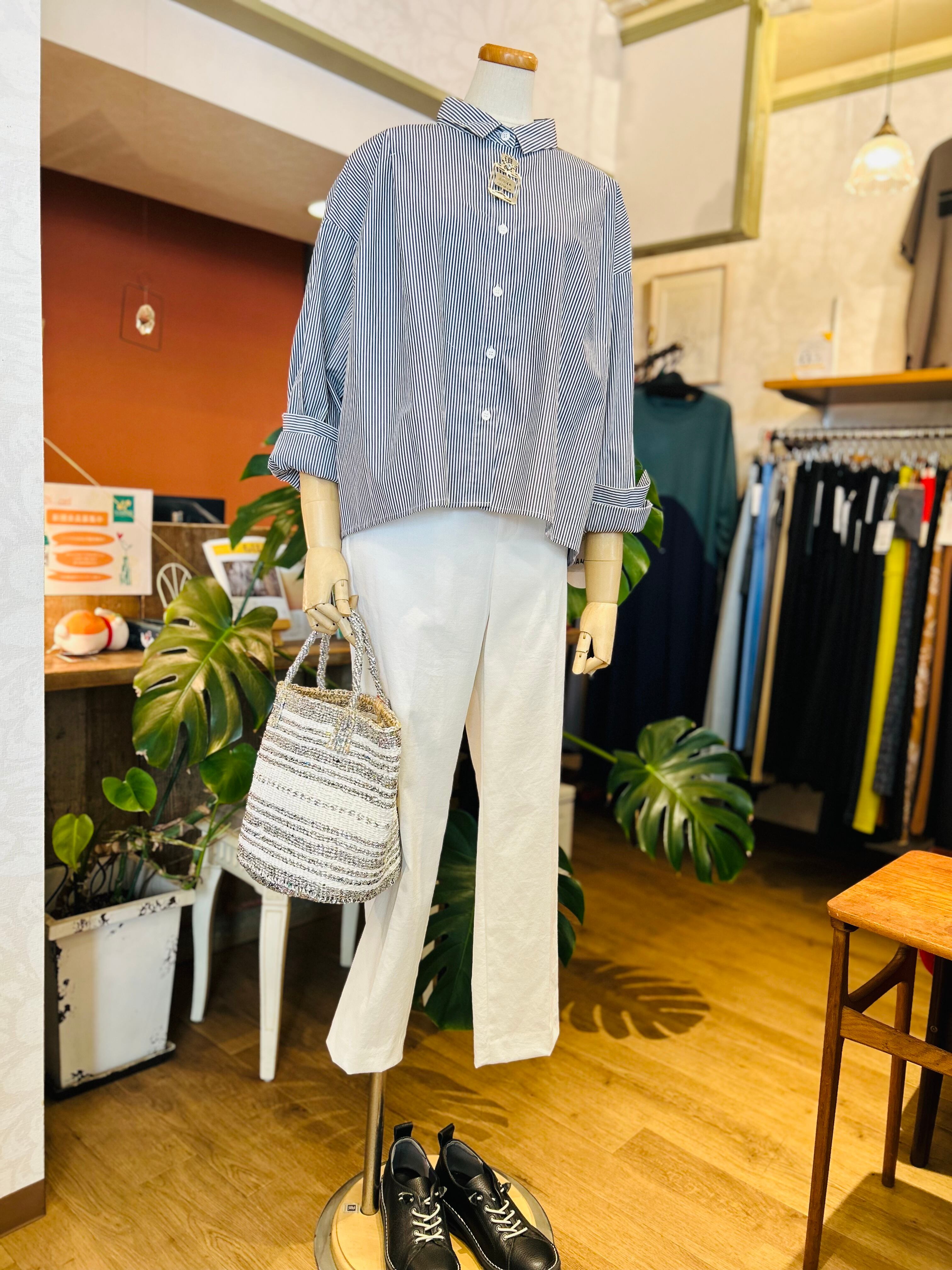 ゆったりとした身頃にショート文のバランスが魅力のシャツブラウス。