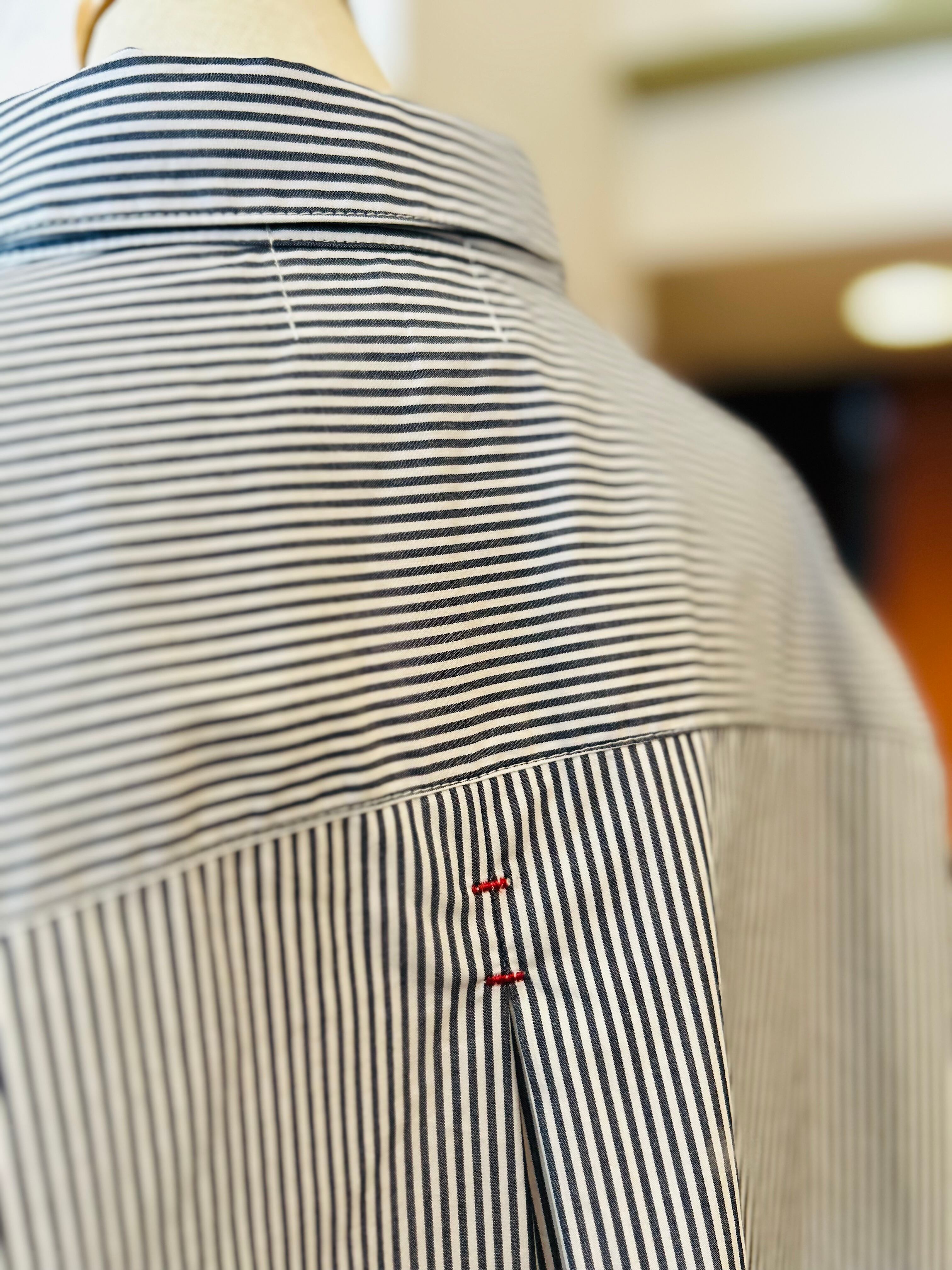 シンプルながらも、前身頃のタックデザインや後ろ身頃のカン止めがさりげないアクセントに。