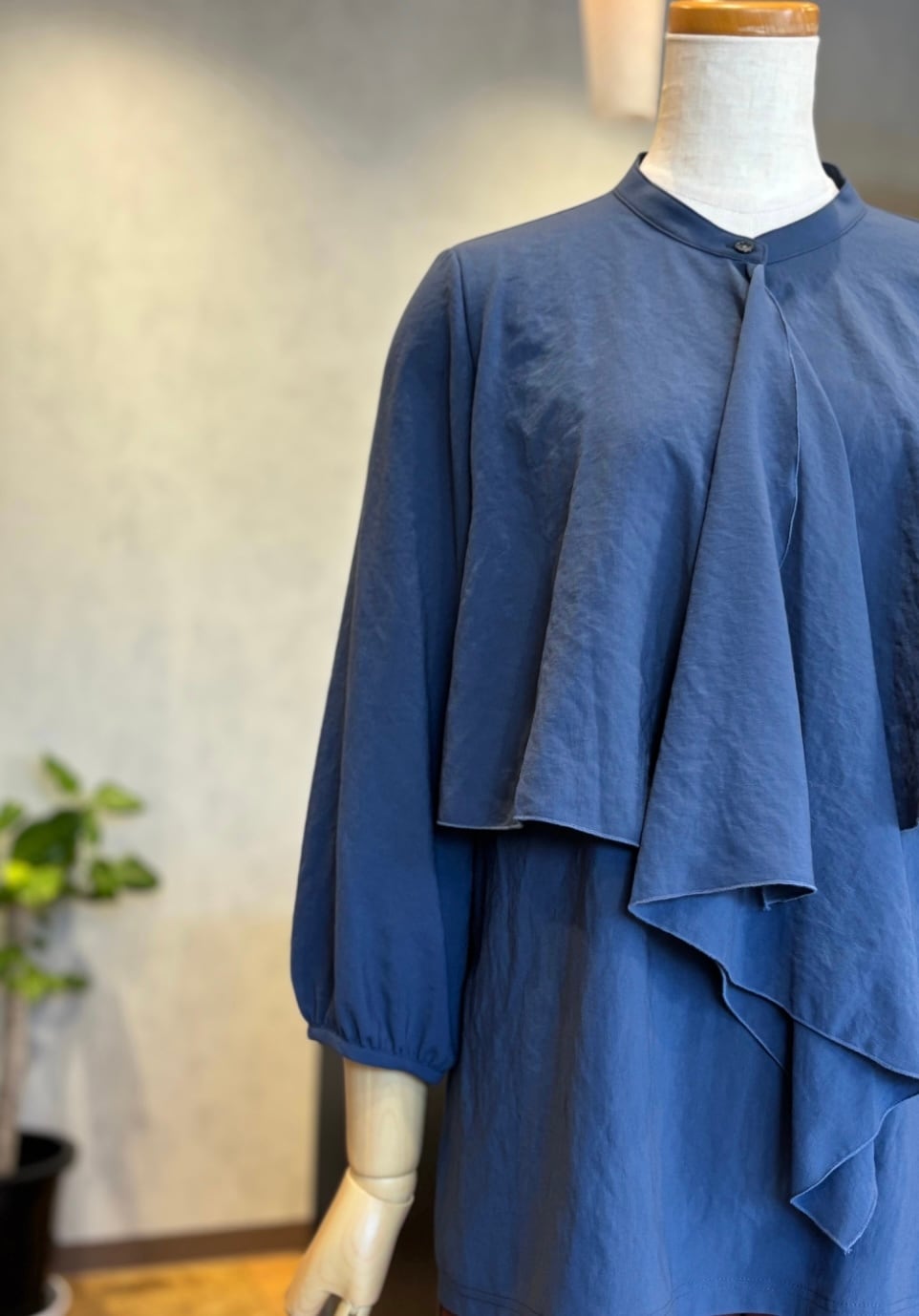 フロントフリル八分袖ブラウス。