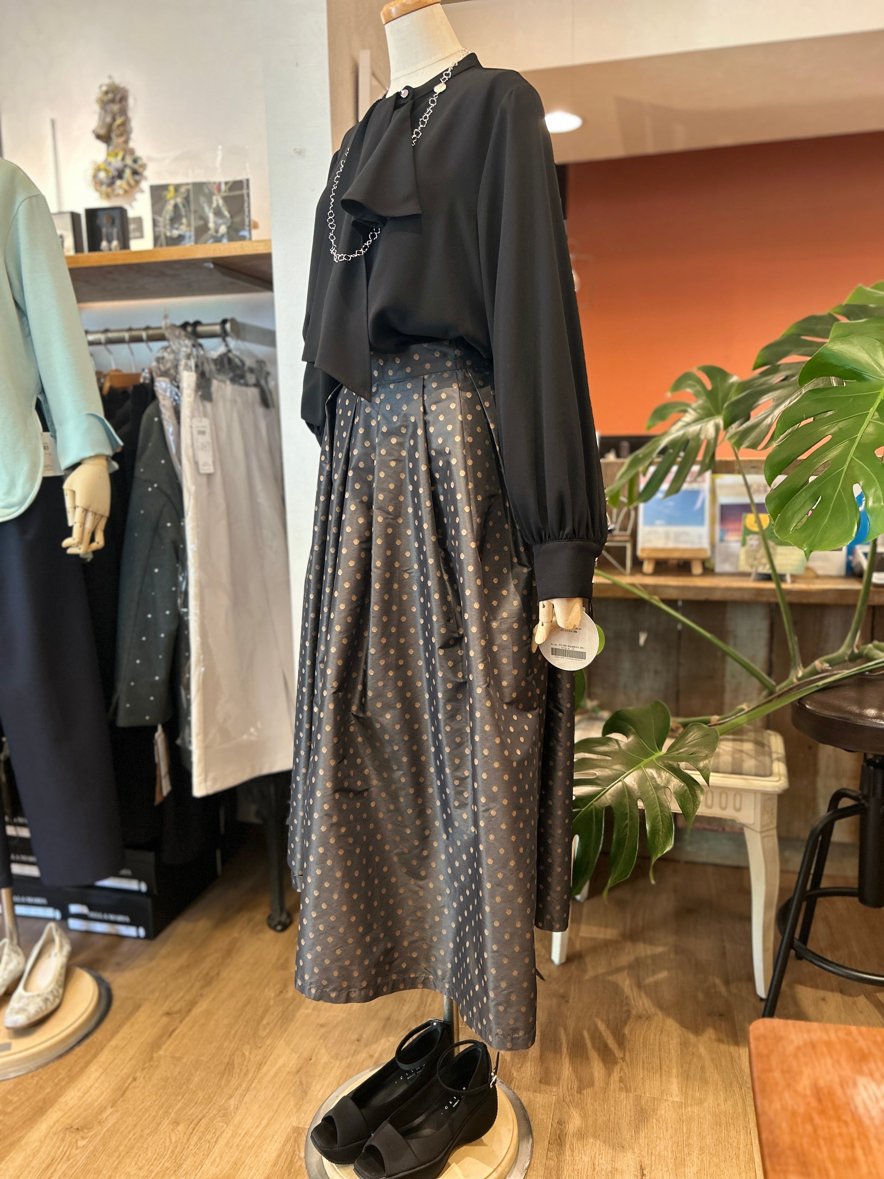 甘くなりすぎない小さめのドットが、大人っぽさと可愛らしさを両立してくれます。