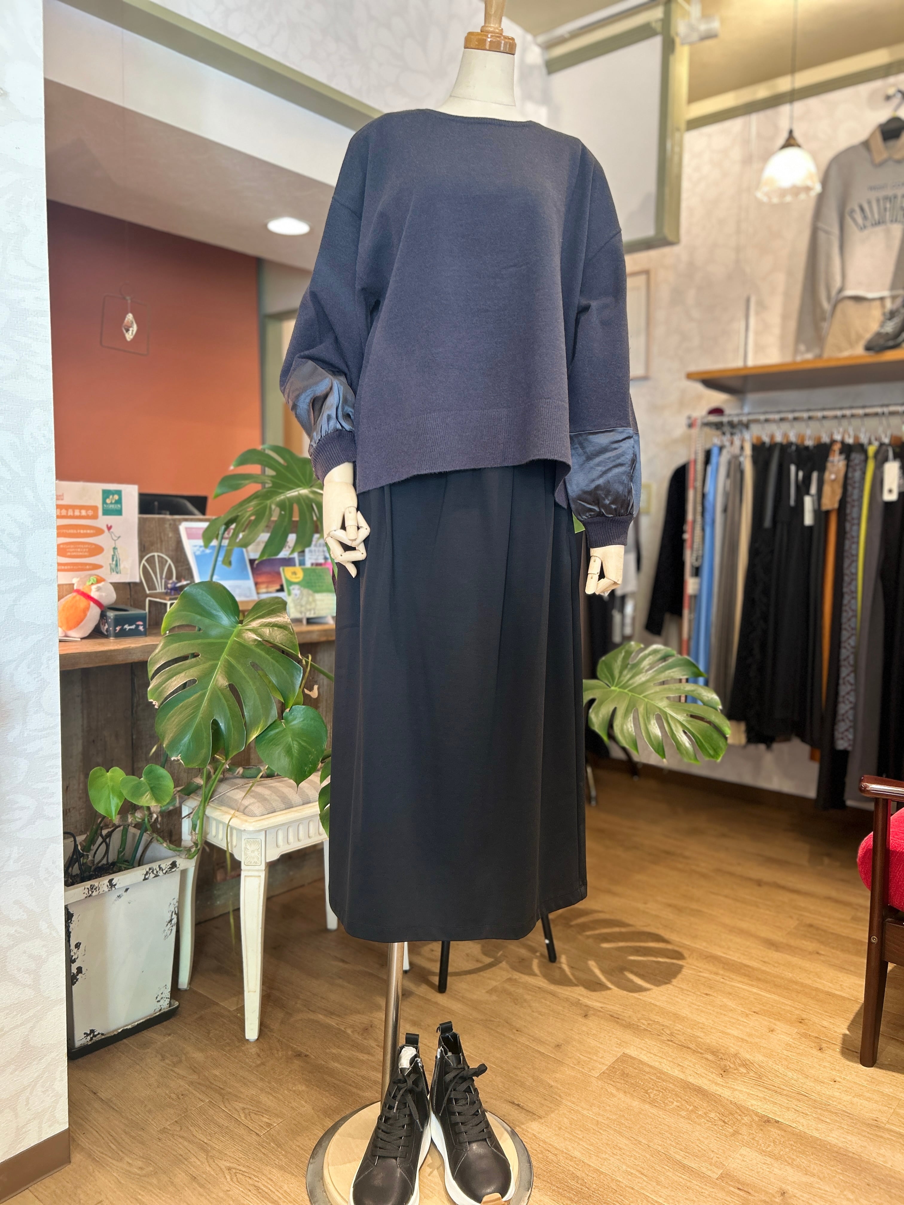 袖口のサテン素材が華やか