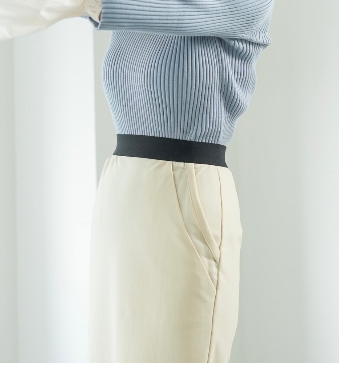 シルエットの美しさにこだわりがつまったミニマルなタイトスカート。熱を蓄える保温性のある素材で、ムレにくくなめらかで快適な穿き心地です。素材の発色の良さを活かしたシンプルボトムです。つるっとした表情でレザーのような表情が魅力。