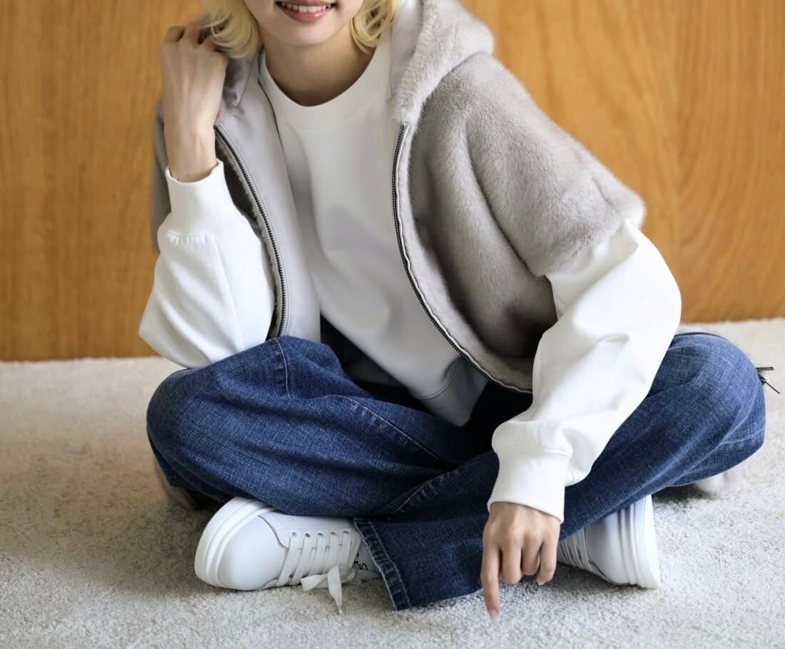 フード付きのデザインが、ほどよいボリュームとリラックス感をプラスします。