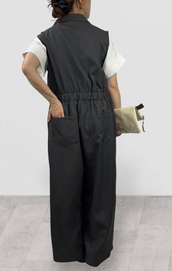 リネンライクスリーブレスオールインワン