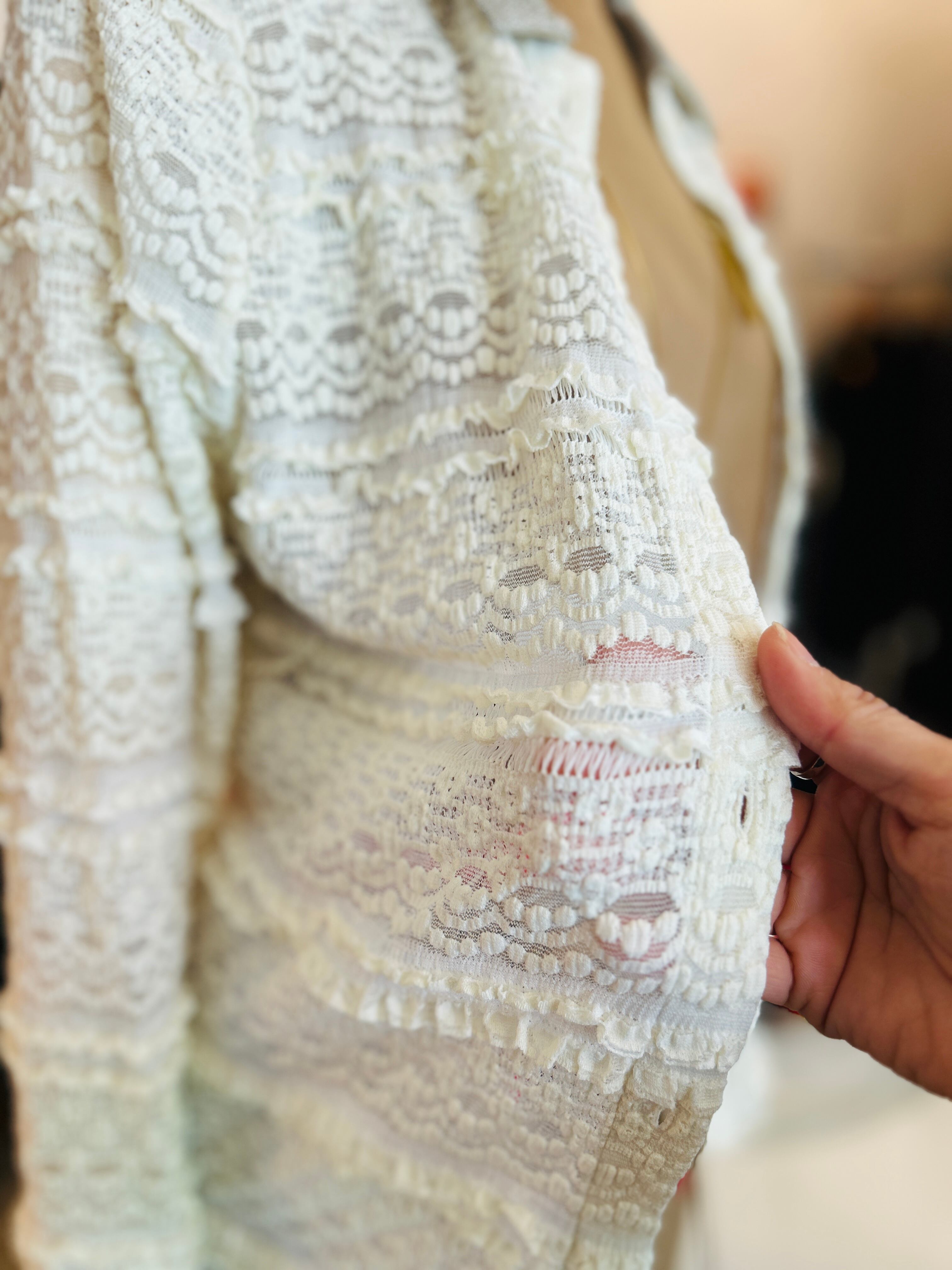 繊細な透け感と表情豊かな編み地が、スタイリングに軽やかなニュアンスを添えます。