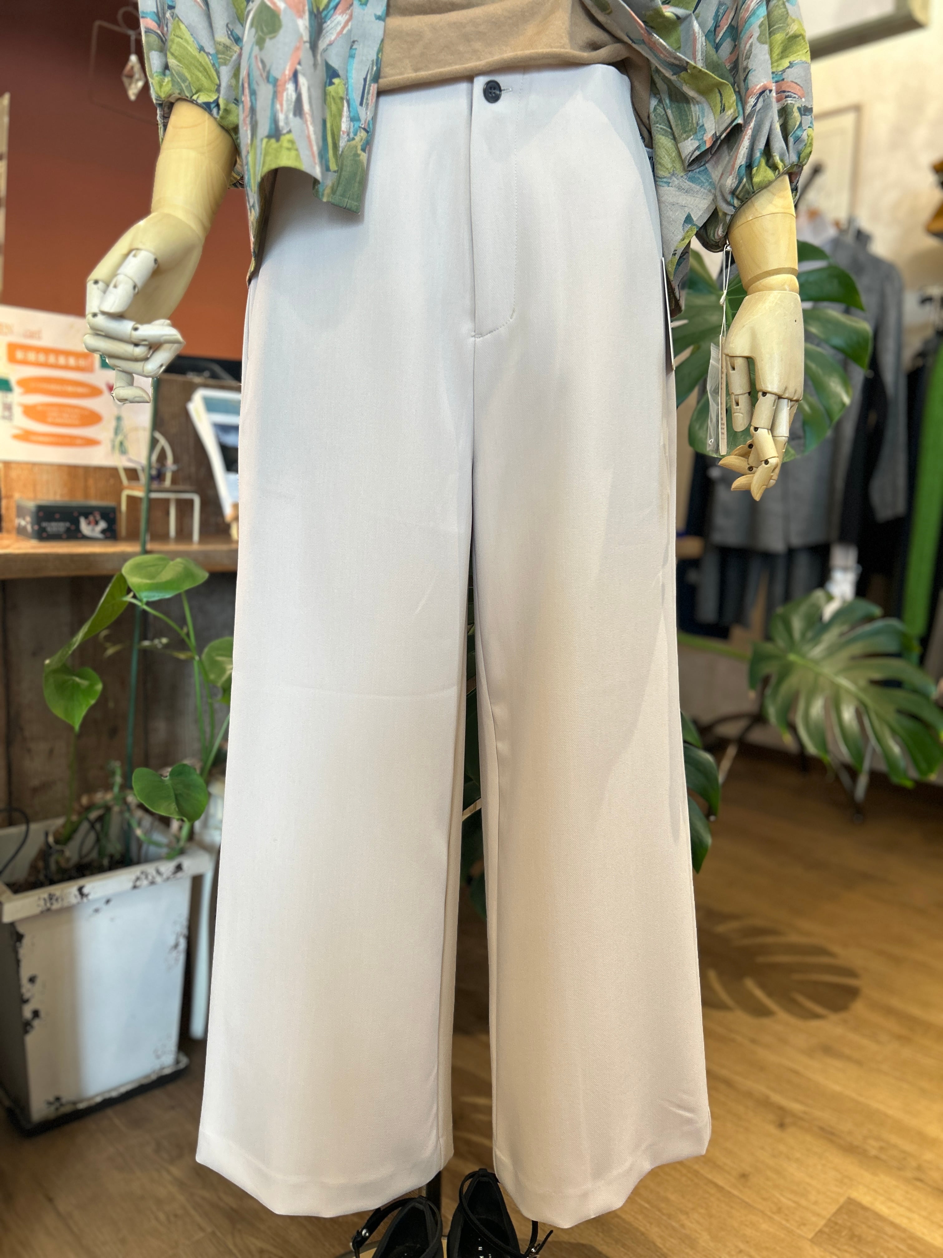 美しい落ち感が際立つワイドパンツ。